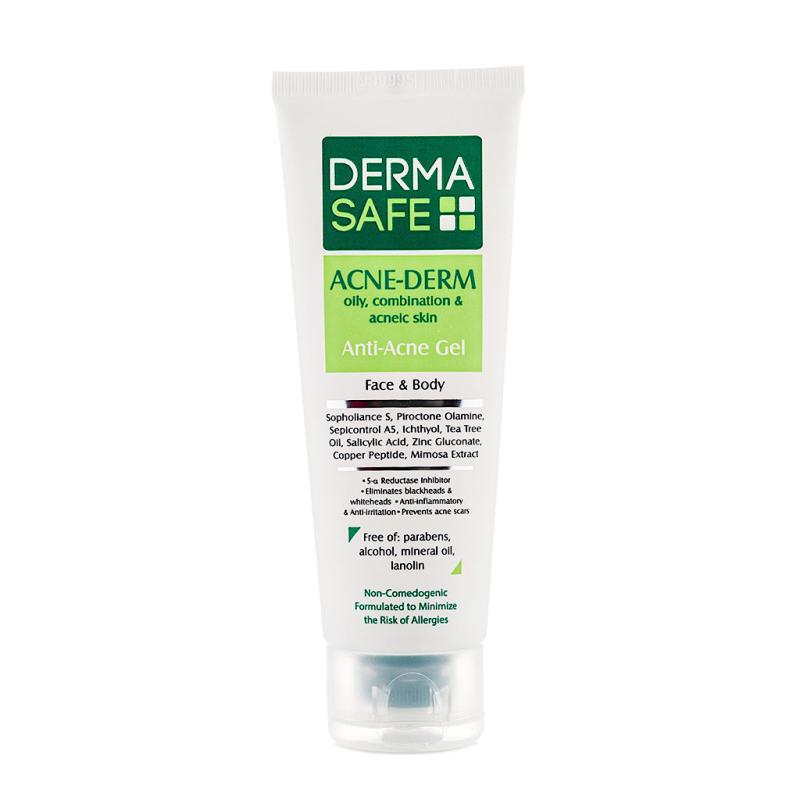ژل آنتی آکنه درماسیف مناسب پوست های چرب، مختلط و دارای آکنه ۷۵ میلی لیتر Derma Safe Acne Derm Anti Acne Gel For Oily, Combination & Acneic Skin 75 ml