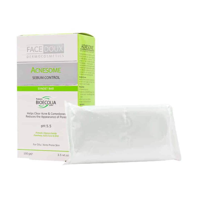 پن کنترل کننده چربی آکنه زوم فیس دوکس مناسب پوست های چرب و دارای آکنه 100 گرمی Facedoux Acnesome Syndet Bar 100 g