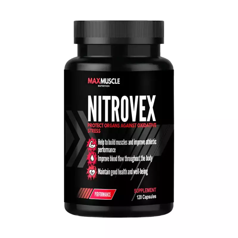 کپسول مکس نیترووکس مکس ماسل در دسته پمپ ها حاوی منیزیم، نیاسین، ویتامین سی، ویتامین ب 6، کافئین، اسید آمینه سیترولین و ال آرژنین است. این مکمل ورزشی سبب تقویت عضله و عضلهسازی میشود.