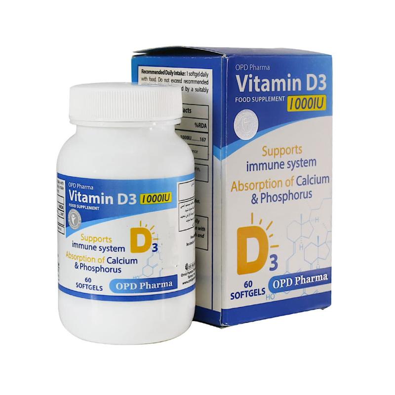 سافت ژل ویتامین D3 1000 واحد او پی دی فارما 30 عددی OPD Pharma Vitamin D3 1000 IU