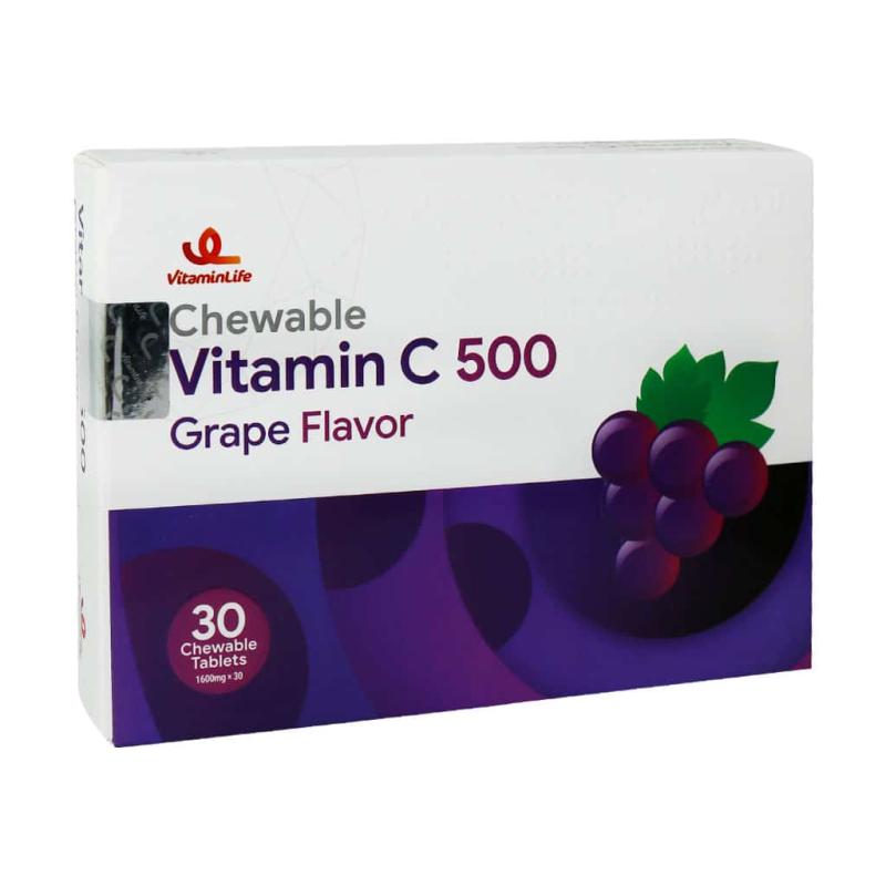 قرص جویدنی ویتامین C 500 میلی گرم ویتامین لایف طعم انگور سیاه 30 عددی Vitamin Life Vitamin C 500 mg 30 Chewable Tablets